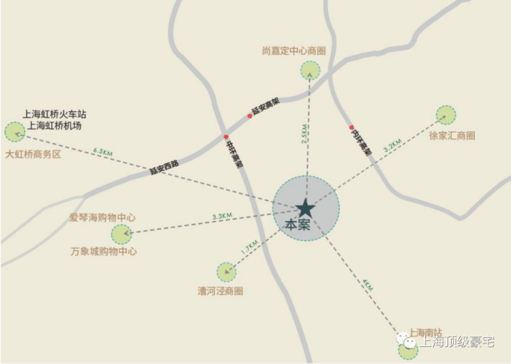 1.2、从交通方面:项目位于吴中路古北路交叉口,1公里左右即可分别上内环和中环高架,在上海绝对是核心地段,距离徐汇商圈仅3公里左右。而且20分钟不到就可以到达虹桥机场,出差也非常方便,项目500米就左右就有地铁站,轨道交通也四通八达。
