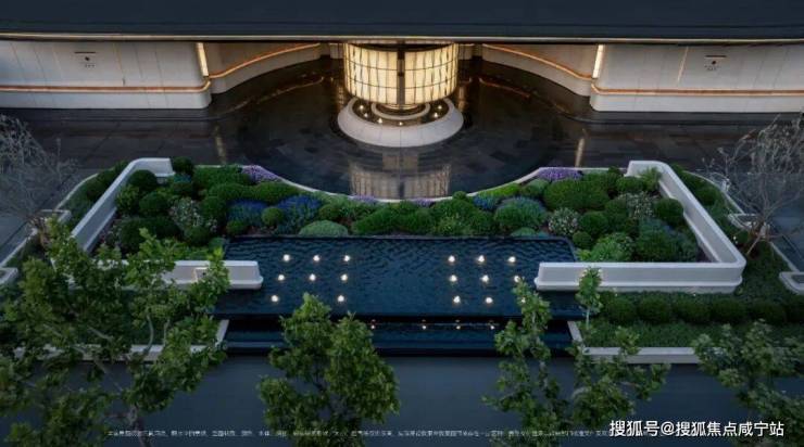 下沉式庭院,通过垂直景墙、悬浮观景台与叠水景观的立体交织,实现移步换景的视觉效果,也与会所空间形成无界交互。