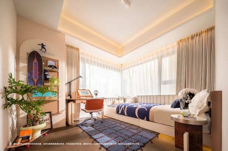静音门锁 、配备 电动百叶的飘窗 (一键调节光线与隐私),确保卧室是一方绝对安宁的天地。