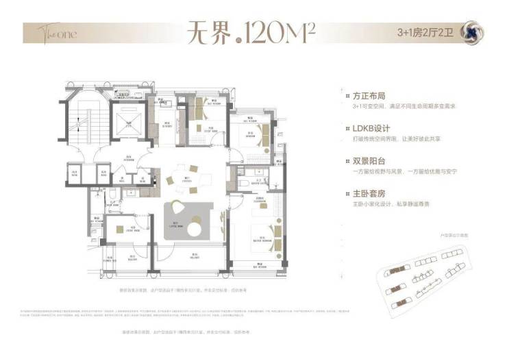 建面约120㎡样板间示意图,实际以开发商公示为准