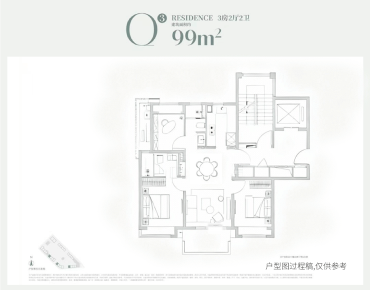 建面约99m²3房2厅2卫