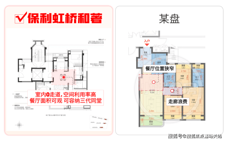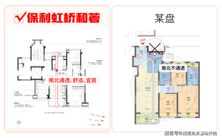 但保利虹桥和著的建面约104㎡3房2卫,却很好的解决了以上所有问题:
