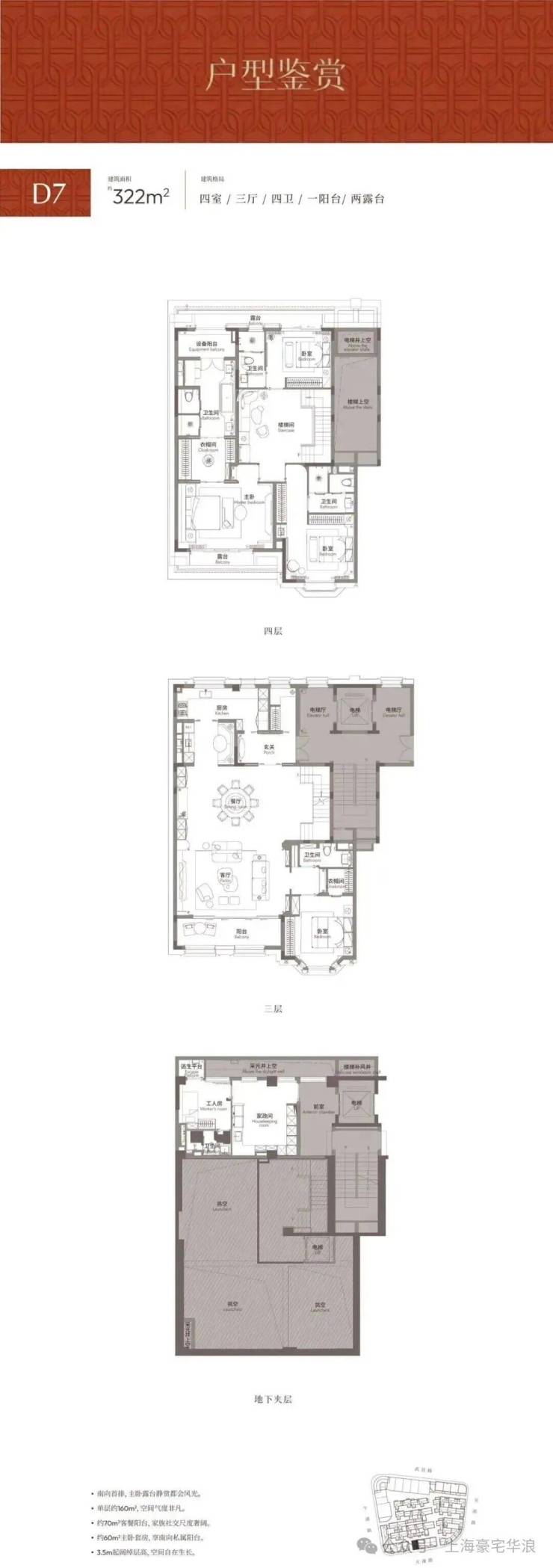 三层约3.5m、四层约3.6m层高,纵向空间感更显阔绰,舒居尺度跃然呈现。
