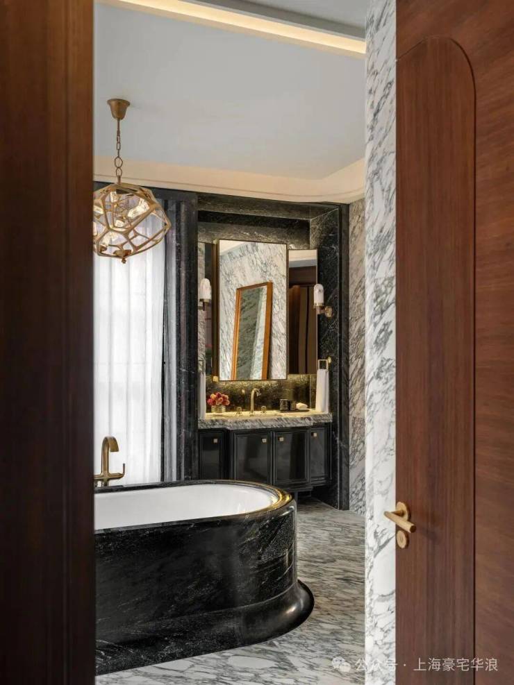 深色烟熏橡木搭配Eric Morris定制的黄铜五金件,将上海石库门的韵味和气质在精致的细节中得到完美诠释。