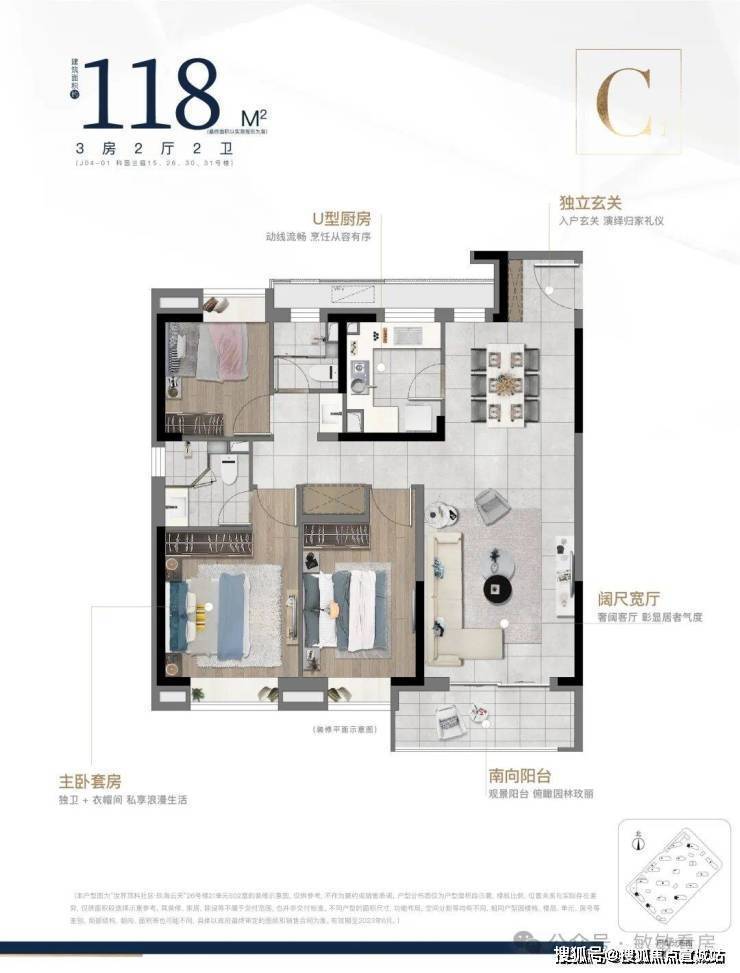 建面;C1户型118㎡ 三室两厅两卫