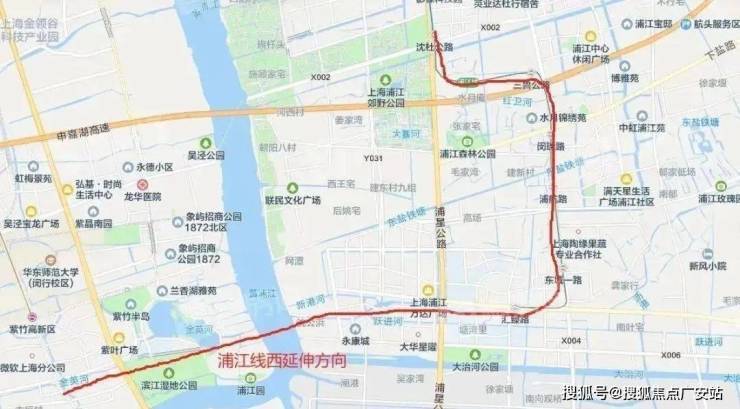 目前,关于浦江线西延伸线的走向研究,最主要的声音:自当前浦江线南端终点站汇臻路站向西,穿越黄浦江到江川路街道,与规划15号线南延伸线紫光路站实现换乘。