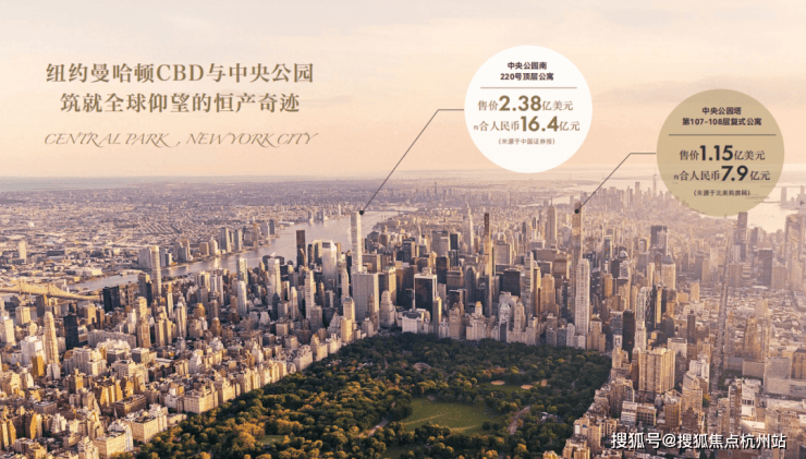 但纵观全球,也就只有位于纽约曼哈顿CBD、南向直面中央公园、上亿美元的顶级豪宅:220 Central Park South(中央公园南220号)、中央公园塔(Central Park Tower)两个项目可以匹配了。