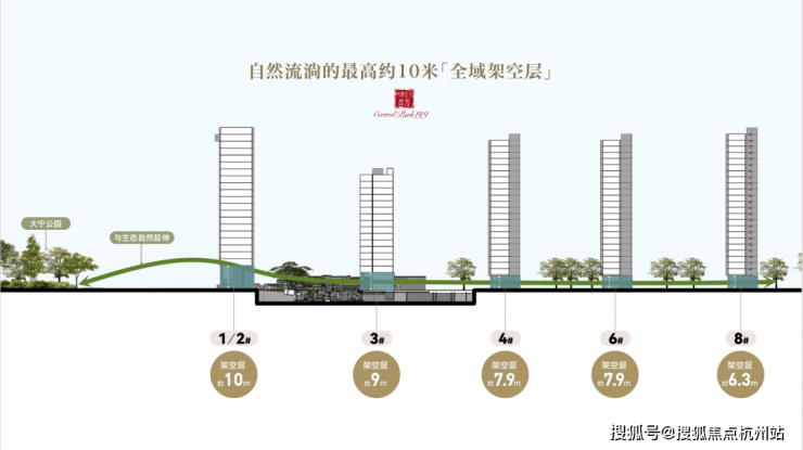 向内,项目更是以令人惊叹的魄力,打造了约6-10米超高层级全域架空设计。