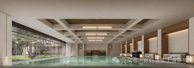 项目巧妙利用南侧约4000㎡的公园绿地,为了将这片珍贵的自然景观最大化地留给每一位业主,中海更是创造性地将约2000㎡的会所“藏”在了南侧城市公园的地下,泳池、健身、私宴、茶室、下沉庭院等功能一应俱全。