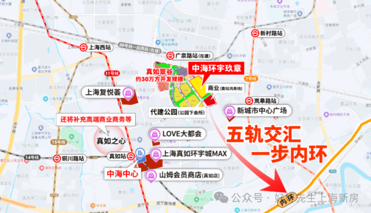 1、五轨纵横+ 一步内环,真如无缝衔接全城高能板块