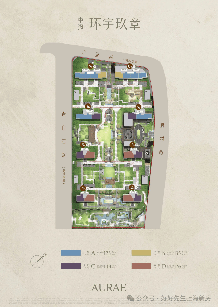 承袭于“玖”系高端产品序列,与新天地中海·顺昌玖里、徐汇滨江的中海领邸·玖章、杨浦滨江的中海·云邸玖章一脉相承的产品营造理念,也取自AURAE“光环、能量场”的内涵,自然诗意的轻盈流动,资源集核的高光生活。与真如地标环宇城、与城市高智人群共赴未来想象,回应生活的更多向往。