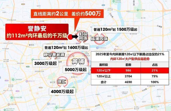 而虹口、杨浦内环,到传统市中心普遍超过3-5站,通勤效率不如这里,总价门槛却比誉静安高出约500万。
