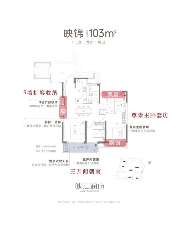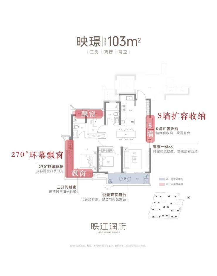 无论是建面约89㎡还是103㎡的户型,均采用了三开间朝南设计,南北通透,更有利于室内收纳更多的阳光与清风,实现更健康的人居、