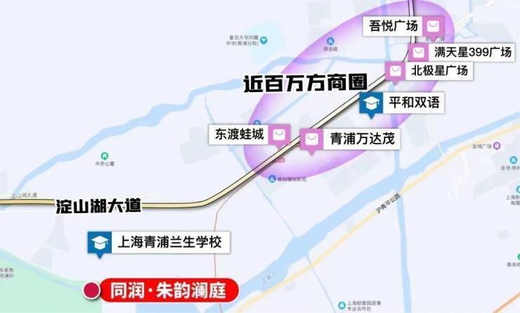 商业上,17号线淀山湖大道站附近集结了万达茂、东渡蛙城、吾悦广场、满天星399等综合体,近百万方商业一路连缀