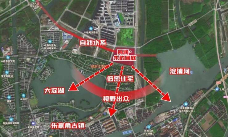 注意我用的是“低密墅区”,单一低密住宅或许不难找,但一整个板块都是小高层洋房/叠加可就难寻了,居住在这里,眼前没有钢筋丛林的致密感,没有熙熙攘攘的人群和喧嚣。有的是低矮的建筑、淀浦河、朱家角景区、大淀湖等。