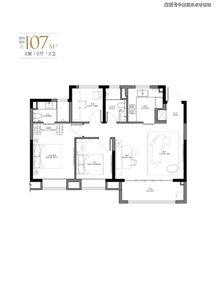 【星尚·观澜世嘉】将推出4种户型,103㎡、107㎡的三房两厅两卫及123㎡、129㎡的四房两厅两卫,共计550套可售住宅。以下是户型分布图: