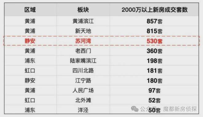 第一:去年约2000万以上的新房成交套数,苏河湾是全市第三,仅次于黄浦滨江和新天地。