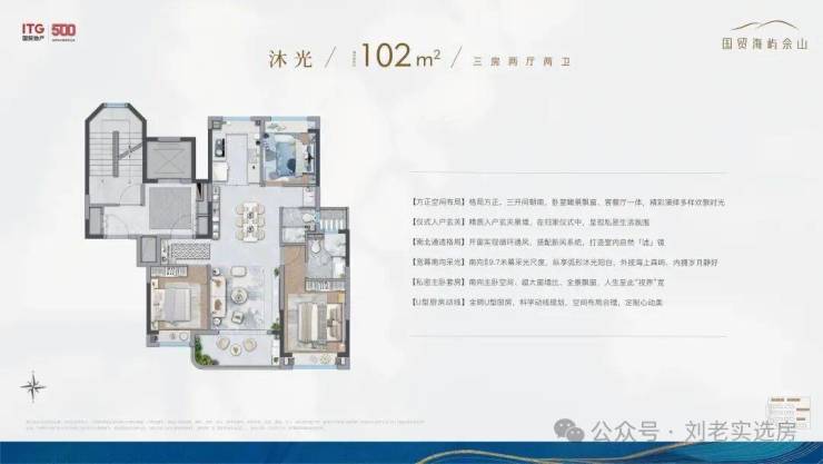 所以,虽然户型的建筑面积是约102㎡的3房,但整个空间的尺度感却能匹配改善型的宽绰3房。