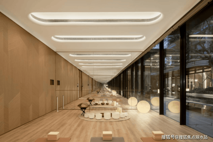 瑜伽室内嵌七组定制音钵,匹配当下音疗的疗愈趋势,通过多元化、国际化的功能带给业主更便捷、更丰富、更松弛的日常体验。