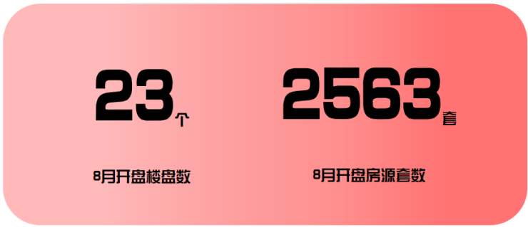 8月,全市共计23个楼盘进行开盘,总计开盘2563套房源。