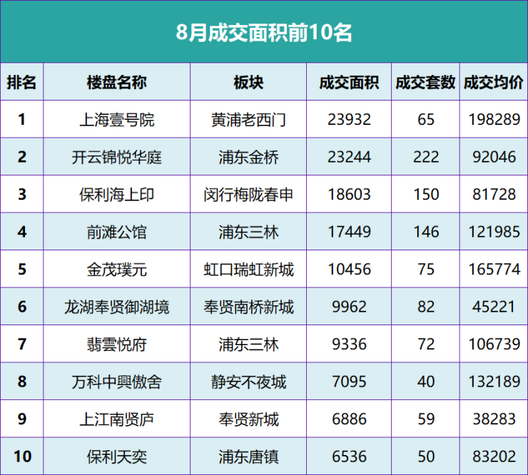 成交面积排名上,黄浦老西门的 上海壹号院以23932㎡的成交面积位居第一。
