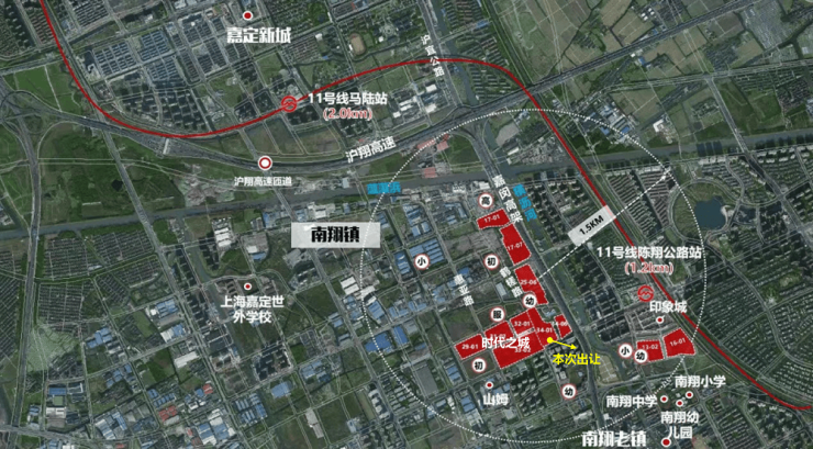 地块位于时代之城东侧,紧邻嘉闵高架。距离11号线陈翔公路站约900米。
