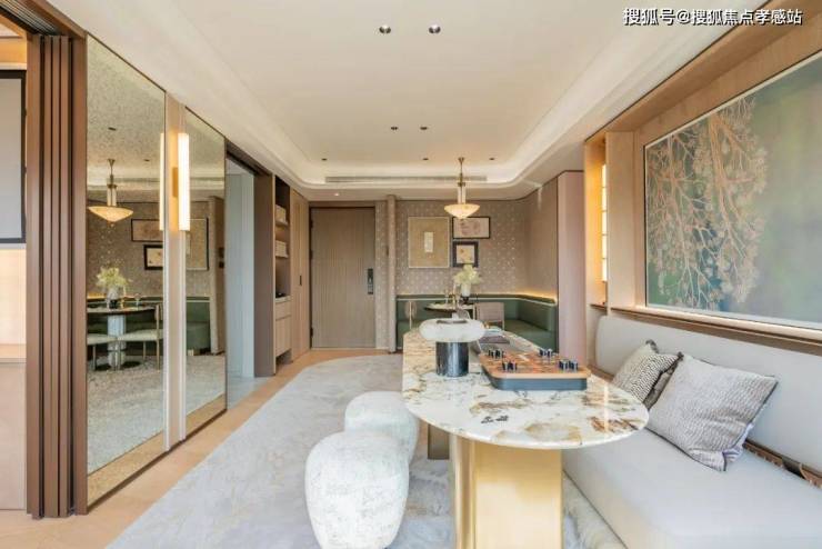 公区设计方面,该户型实际是南北动静分区的设计,南面主次卧休息区域,北面客厅联通餐厨区和水吧台,格局相当方正,避免了面积浪费,也让视野几无遮挡,进门就能感受到大宅气度。☮🔥保利光合上城售楼处电话:400-8787-740👈🔥