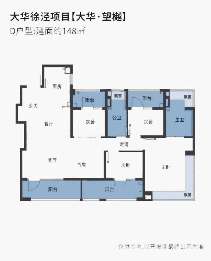 建面约148㎡户型更是做到了惊人的四阳台配置,远远超过新规标准。