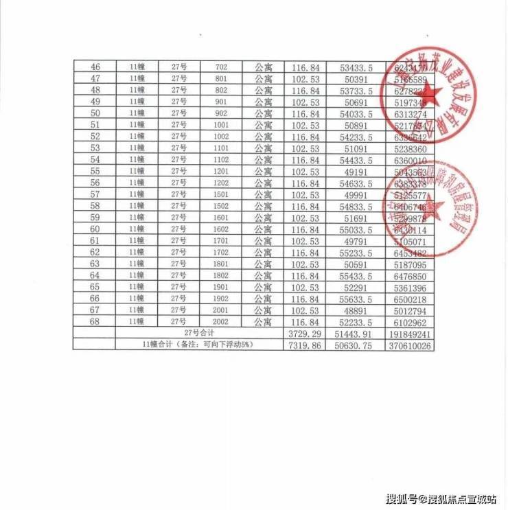 一房一价表发布!