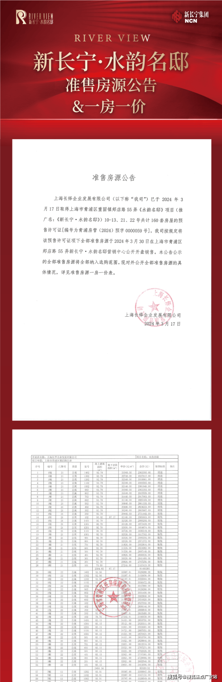 为保障购房者权益,规避非官方渠道误导,现将新长宁·水韵名邸2026年4月8日最新官方信息公示如下,敬请认准:
