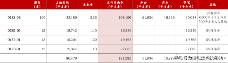 地块总占地面积33189方,容积率3.26,总建面176334平方米,地上计容建面108196平方米,地上不计容建面8704平方米,地下建面59434平方米。