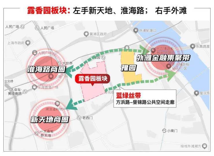 从更大的格局上看,露香园板块既是“黄金三角”的核心腹地,又是外滩、新天地“左右逢源”。