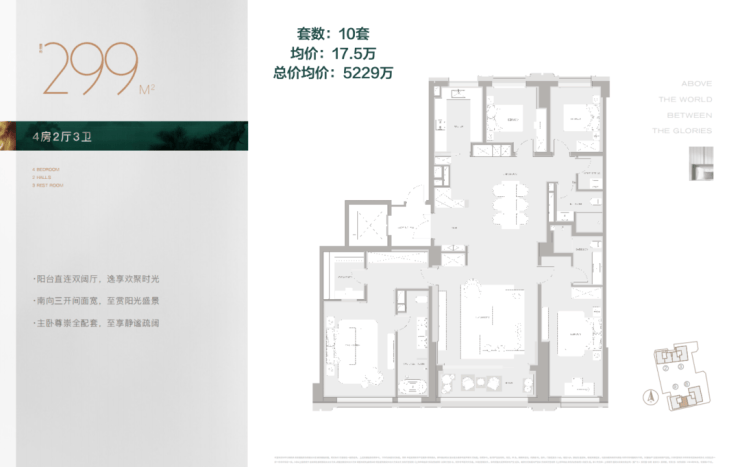 299㎡,4房3卫,单价17.5万