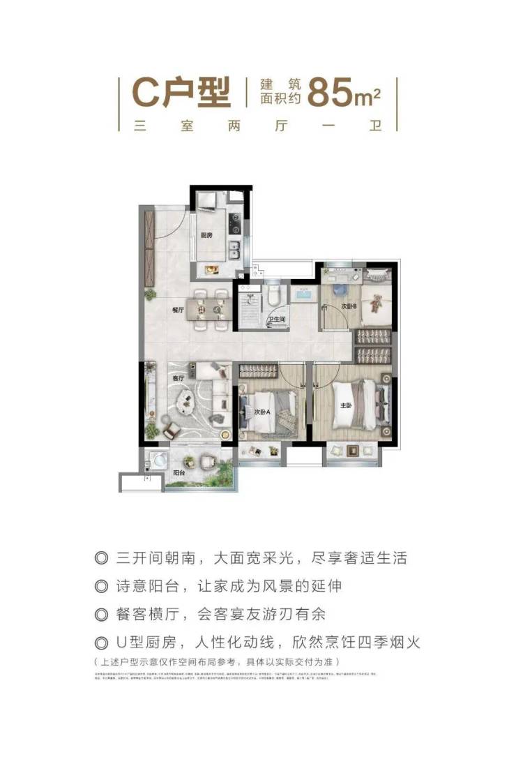 |建面约85平样板间实景图
