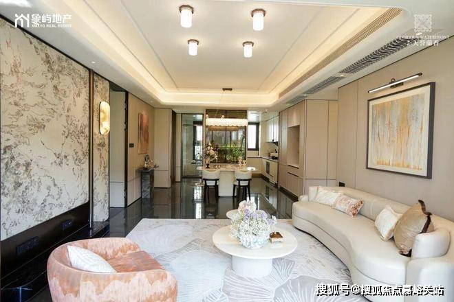 材料上,延续了外立面石材的特点,✅✅象屿天誉蘭香售楼处电话:400-8787-740✅✅全屋采用大量石材,比如奢石、高档岩板等各种石材进行铺设。
