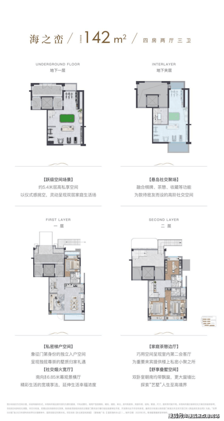 项目以山澜、望云、礁屿、秘谷四大主题景观统一打造雅奢度假风格,为业主带来酒店感墅级生活场景。