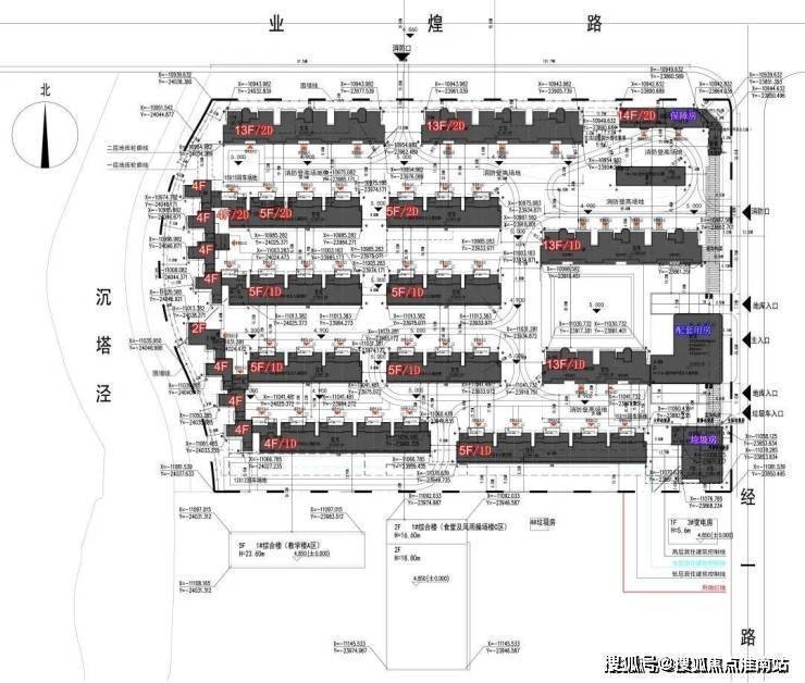 根据设计方案显示,项目拟建4幢总高13F的小高层,10幢2-5F别墅以及相关的配套建筑。