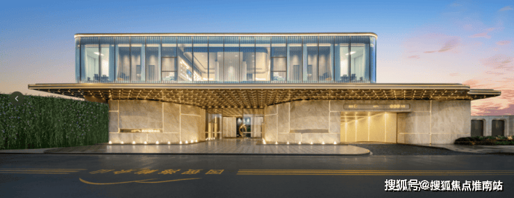 运用玻璃、石材、铝板、涂料搭配浅香槟的精细楼层金属线条。