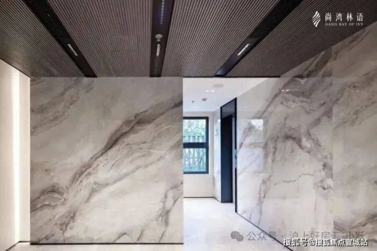 进入南入户大堂,能感受到具有仪式感的现代轻奢设计,灰色大面铝板搭配金色格栅,每一次入户都能体验到无比尊崇的感觉。内部墙面做了大面积岩板,以及具有设计感的吊顶,更贴心地配备了空调,营造舒适的环境。