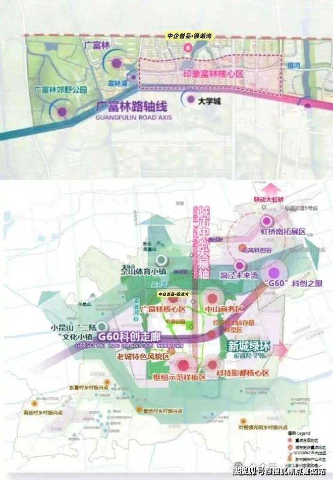 交通配套:距松江有轨电车 2 号线广富林路站约 200 米,2 站可换乘地铁 9 号线松江大学城站,未来地铁 12 号线西延伸段(规划中)穿境而过。