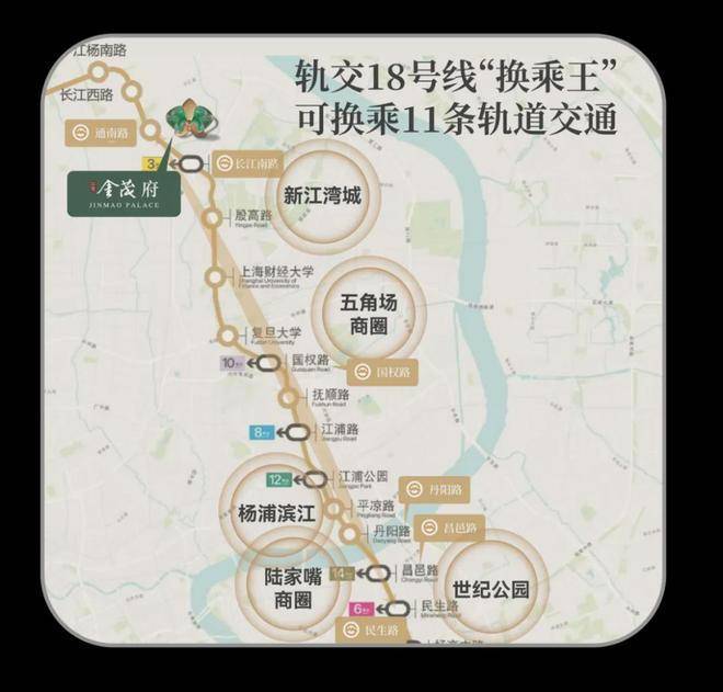 一方面是18号线“含金量”很高,3站财大,4站复旦,并经过杨浦滨江、陆家嘴等CBD,是科创、教育、金融产业高度集中的一条轨交线,而且18号线二期今年底即通车——在江湾金茂府交房前就能通车,大大缩减“需要等”的时间。