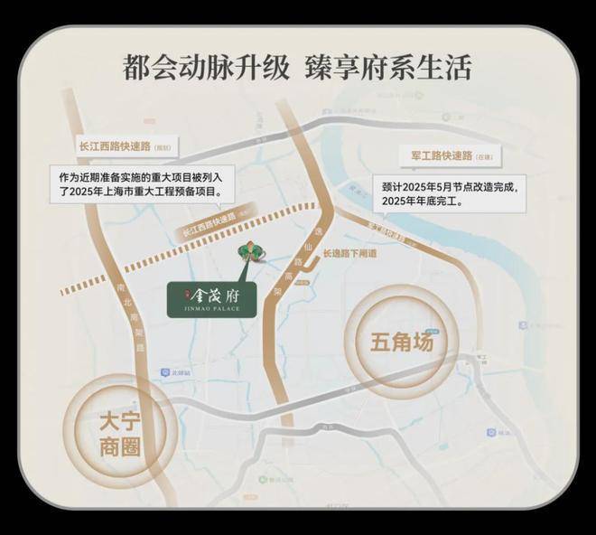 另一方面,军工路快速路新建工程预计今年年内完工(来源:上海发布),意味中环北抬今年将迈出重要一步,第二步长江西路快速路已被列入2025年上海市重大工程清单,预计即将开工——届时,江湾金茂府就将从“中环旁”升级为“中环内”!