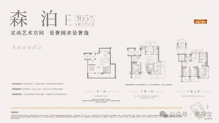 建面约165㎡下叠 预计使用率最高约148%、三向采光地下、LDBKG双入户流线、南北通透主卧套房