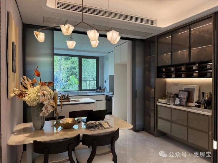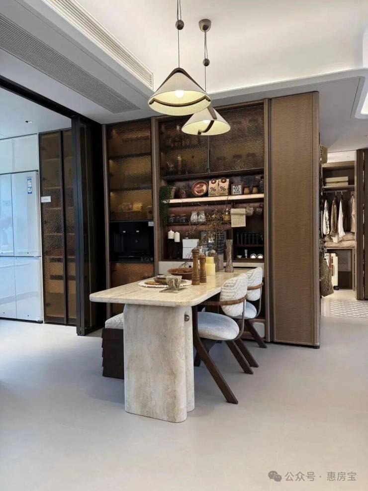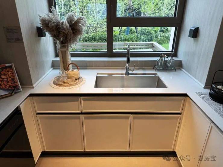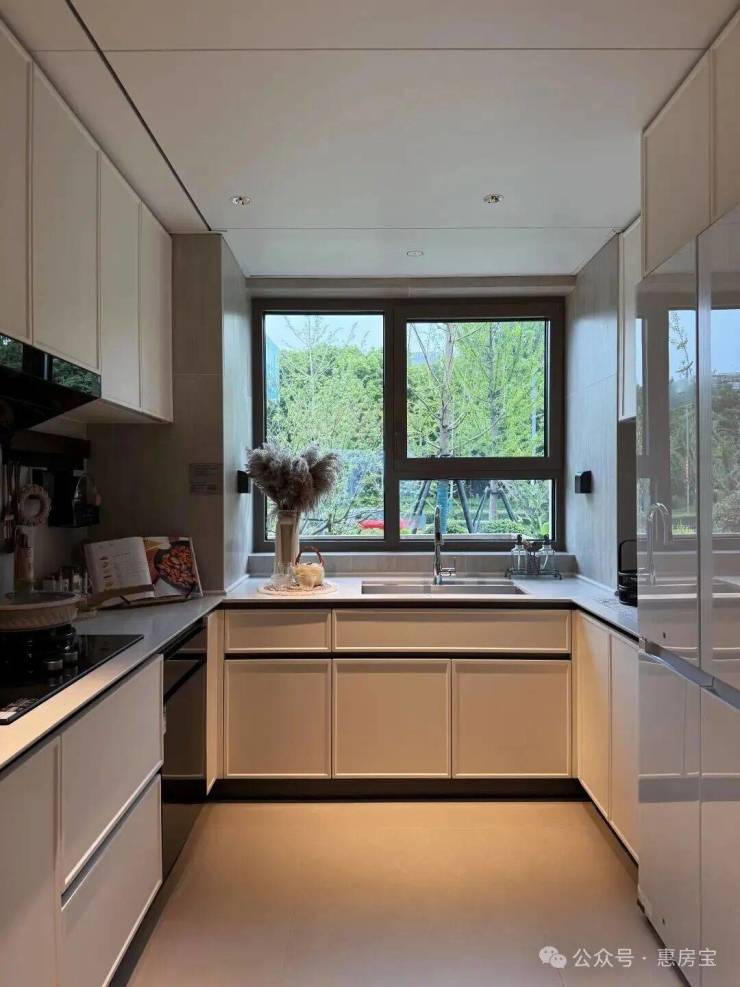 入户设置800库空间,它和传统玄关柜的区别在于:从“平面收纳”升级为“立体仓库”,储物功能更强大!约5米面宽横厅,多出来一个灵动空间,可根据个人需求定制为开放式书房、茶室等;岩板+金属饰面电视背景墙同样为交付标准;LDK一体化,餐厅区域可轻松放下6人位餐桌,并预留餐边柜位置;U型厨房,配置方太四件套(油烟机、灶具、洗碗机、蒸烤一体机)、科勒水槽及龙头等,基本所见即所得;同时厨房也附赠飘窗,将飘窗台面与橱柜一体化设计,做为了水槽区域,极大的提高了厨房空间的实用面积!边套户型主卧为270°转角飘窗,并预留两个衣柜空间;北卧为封闭阳台,实际交付时阳台会改造到位,地暖通铺,地板墙纸通铺,吊顶做好,可参考样间效果。
