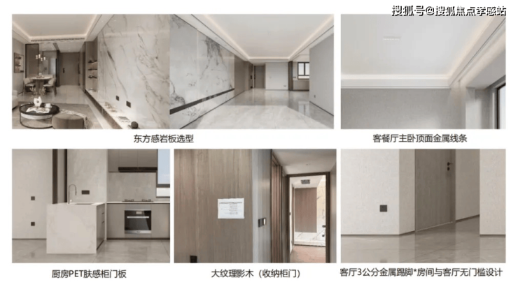 而在硬性标准之上,保利·海上瑧悦还充分融合了东方文化高定细节!比如说,客厅整面交付的大面积岩板背景墙均为东方定制款式,采用的是水墨丹青和徽州印象样式,配色风格凸显东方风雅;