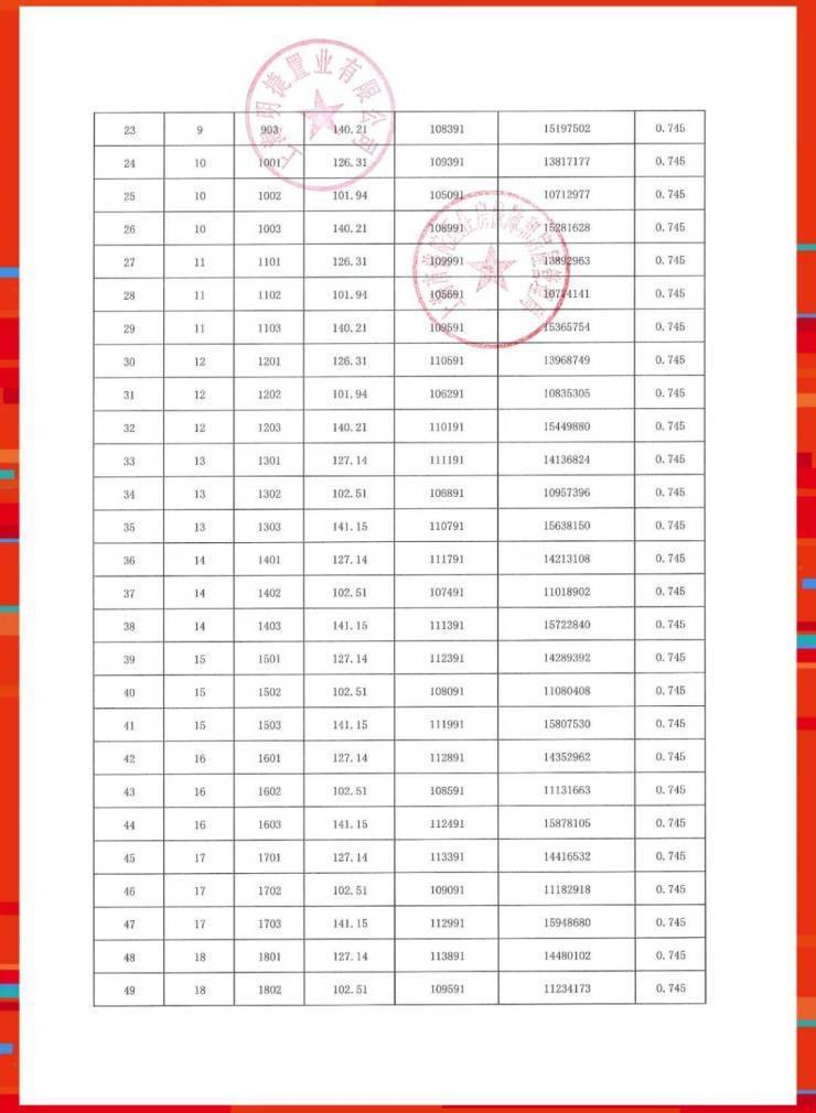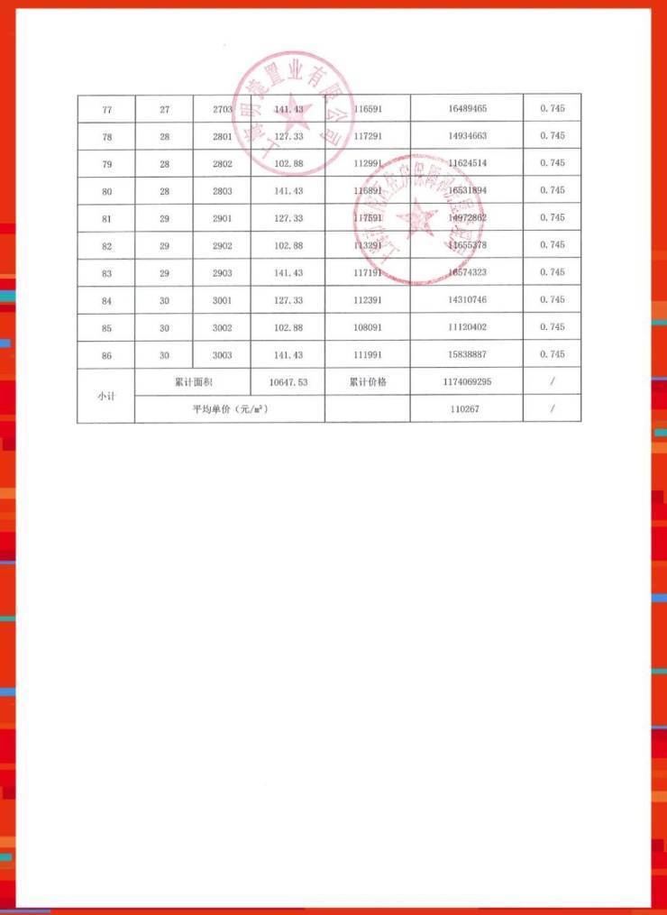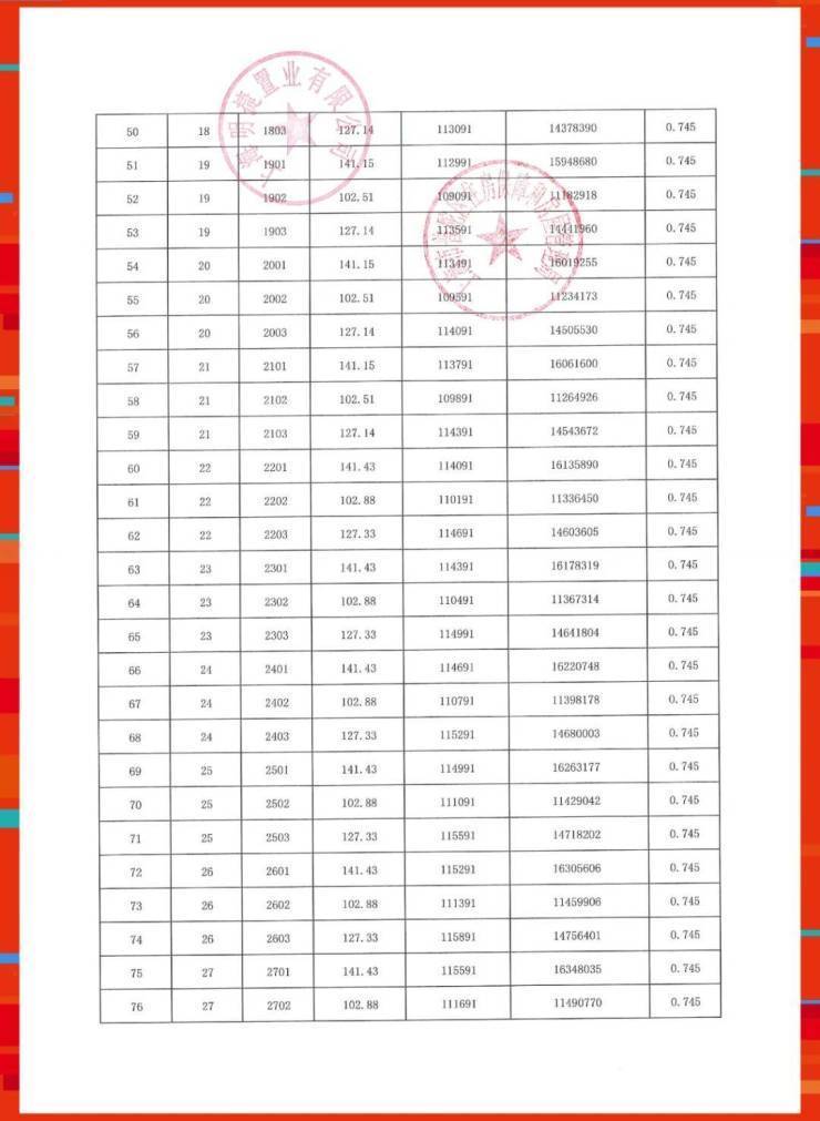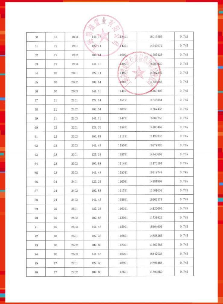 准售房源一房一价表