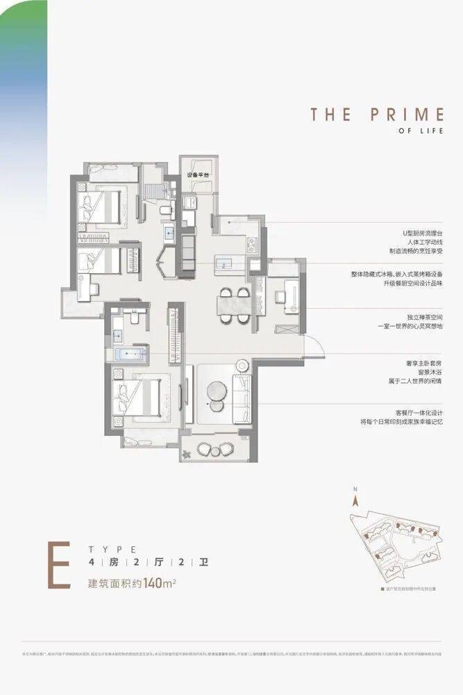 ▲E户型丨140㎡丨4房2厅2卫