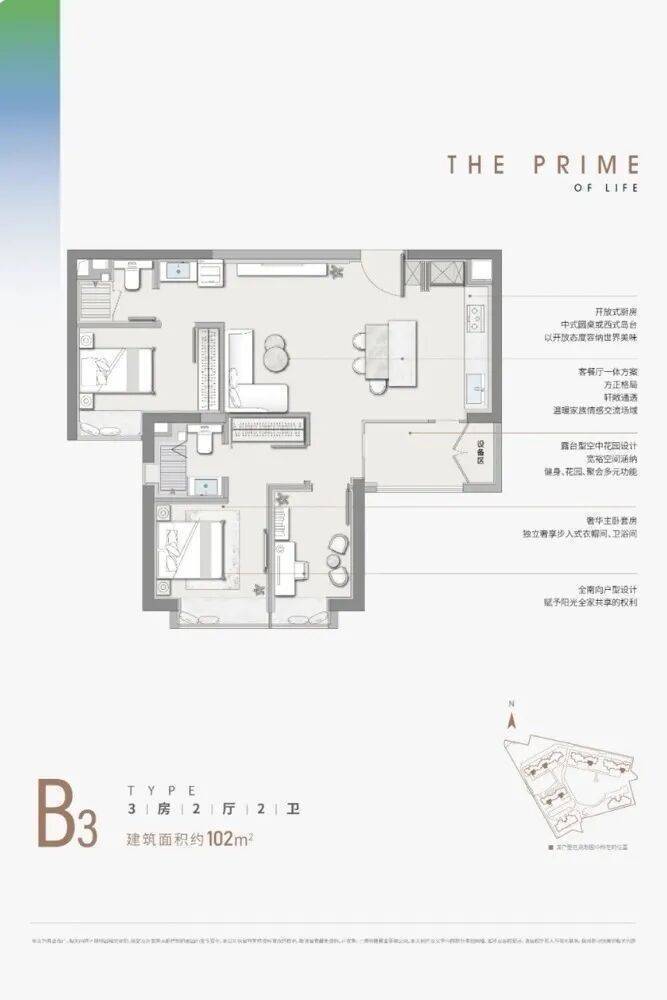 ▲B3户型丨102㎡丨3房2厅2卫