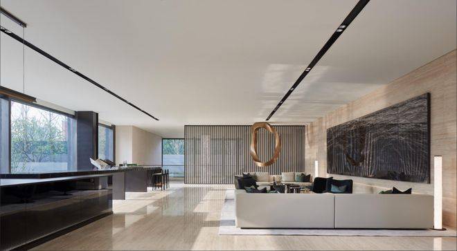 你能看到,洋房约5.3米高的大堂,归家每一步都是尊贵感;甚至电梯轿厢墙面都采用瑞士翡翠奢石,既有玉石的温润感,又不张扬。