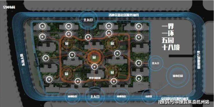 当然,【上实·望海】为了更好的与这自然生态相结合,在社区内打造了一界、一环、五园、十八境的景观。